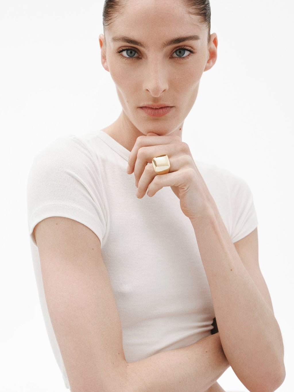 Anillo cuadrado de plata 925 bañada en oro amarillo de 18K con efecto pulido