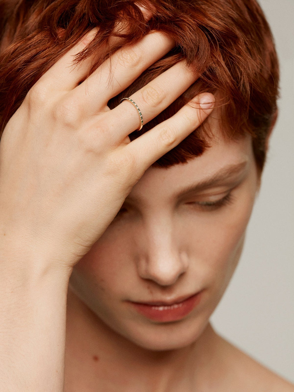Anillo de oro amarillo de 9K con esmeraldas y diamantes