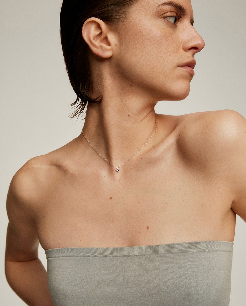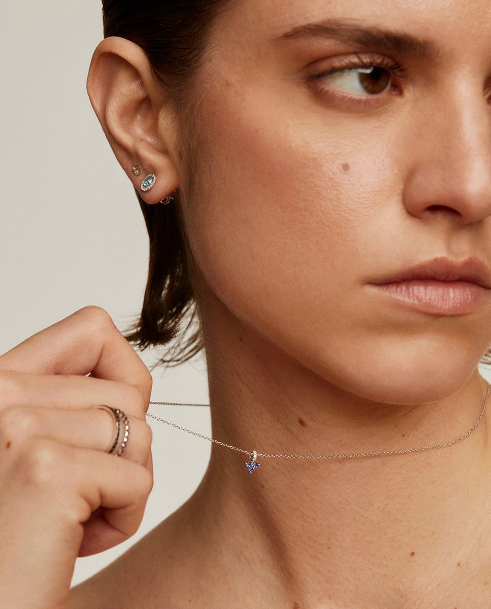 Colgante de oro blanco de 9K con zafiros azules y diamantes