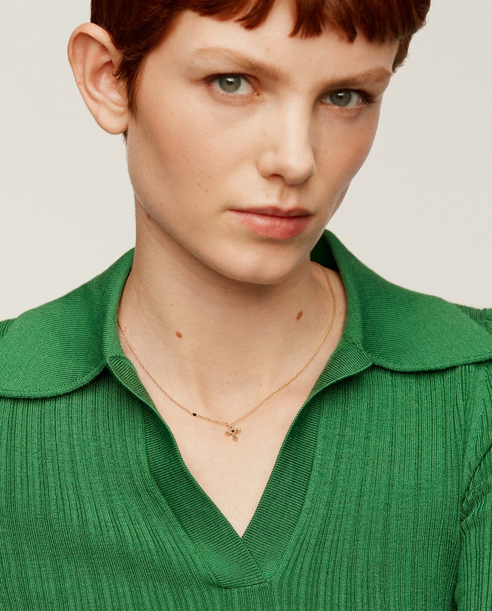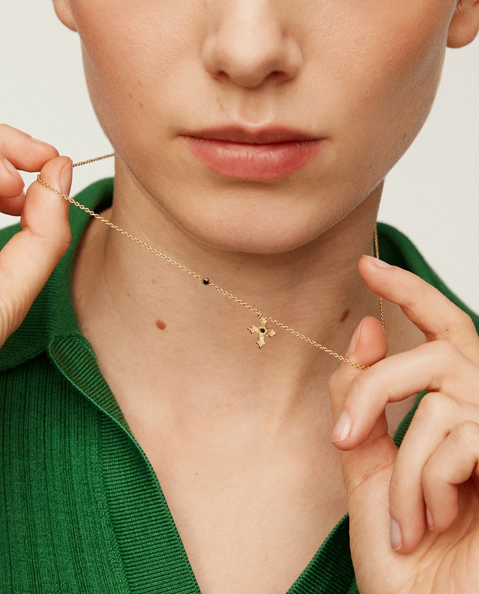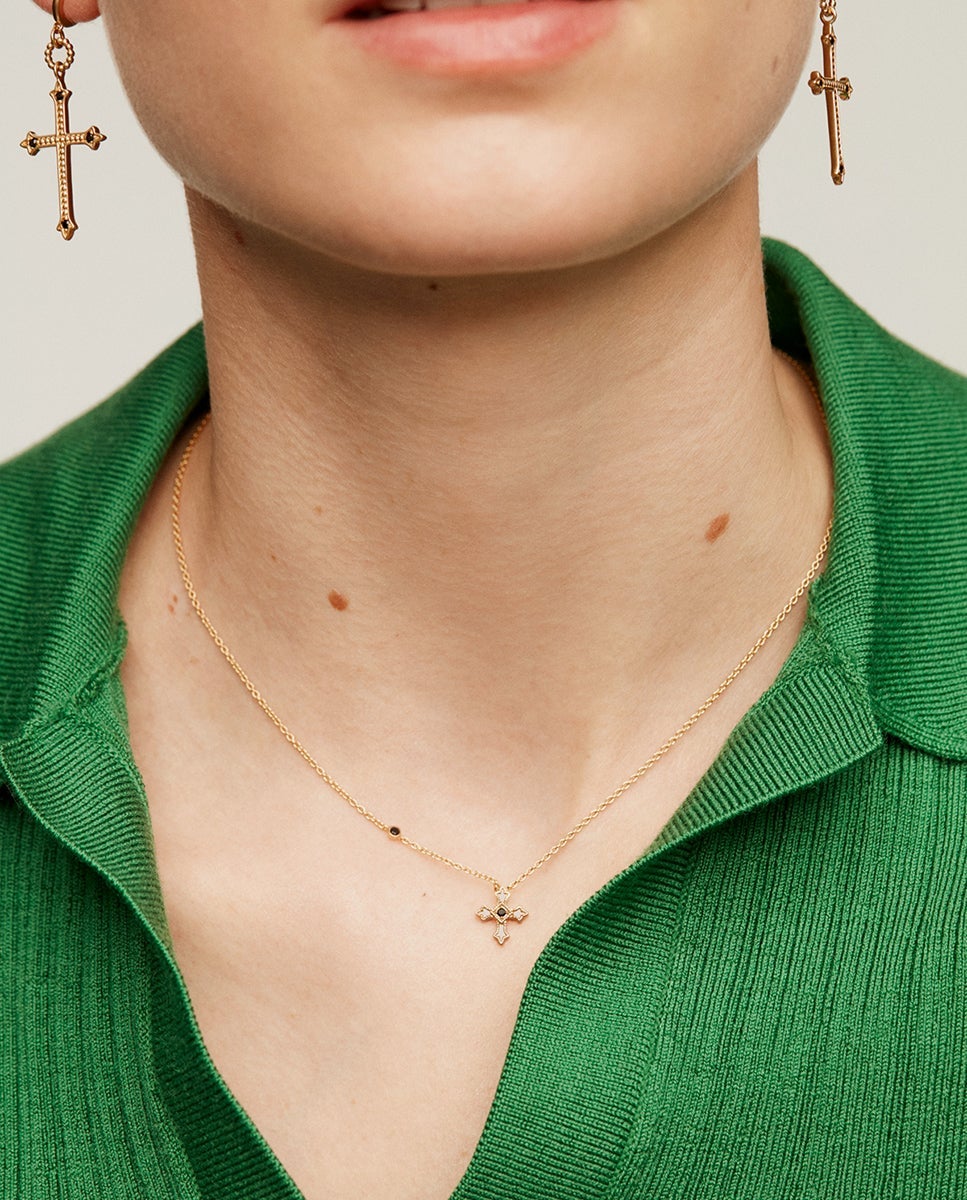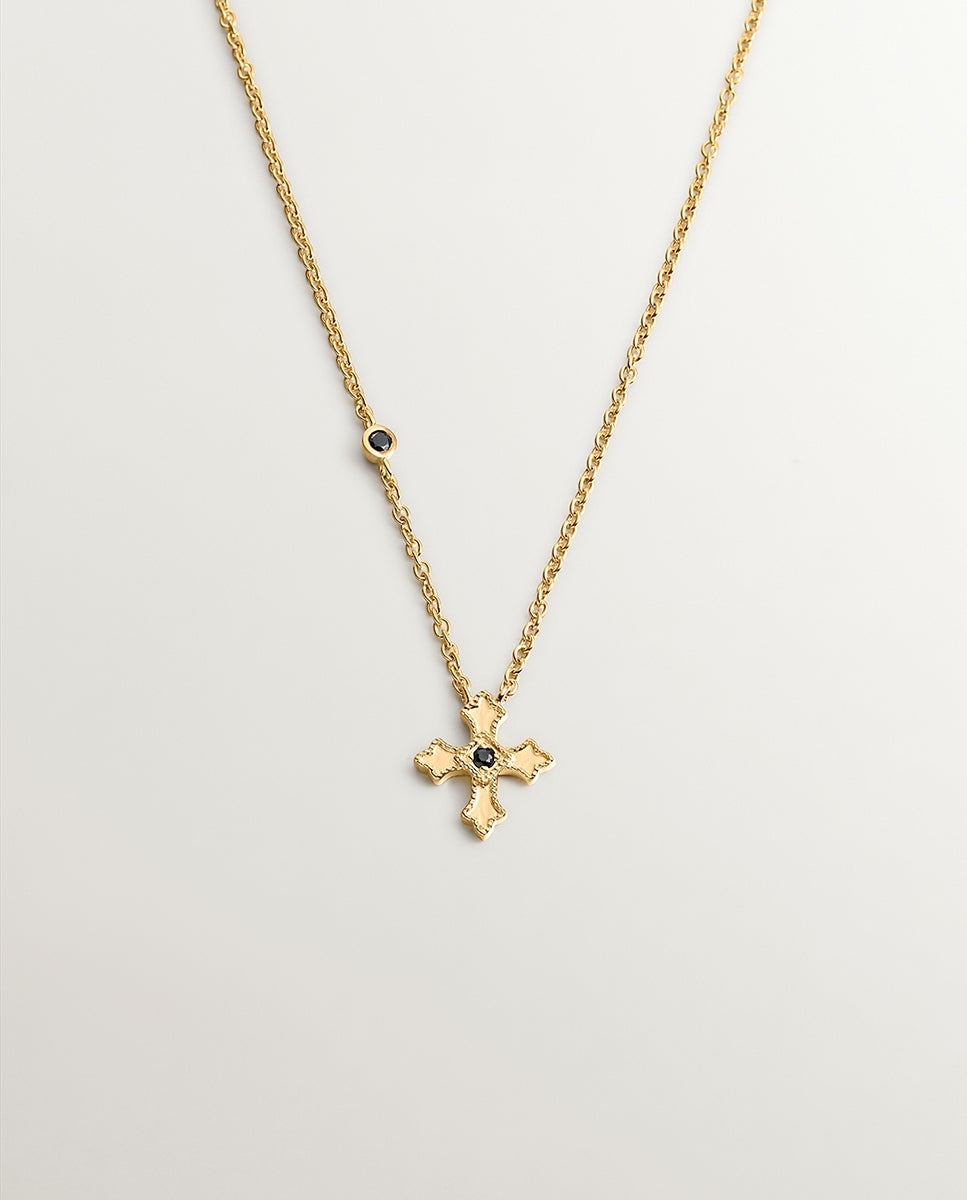 Colgante de plata 925 bañada en oro amarillo de 18K con cruz pequeña y espinelas