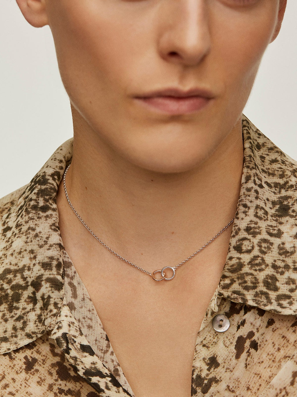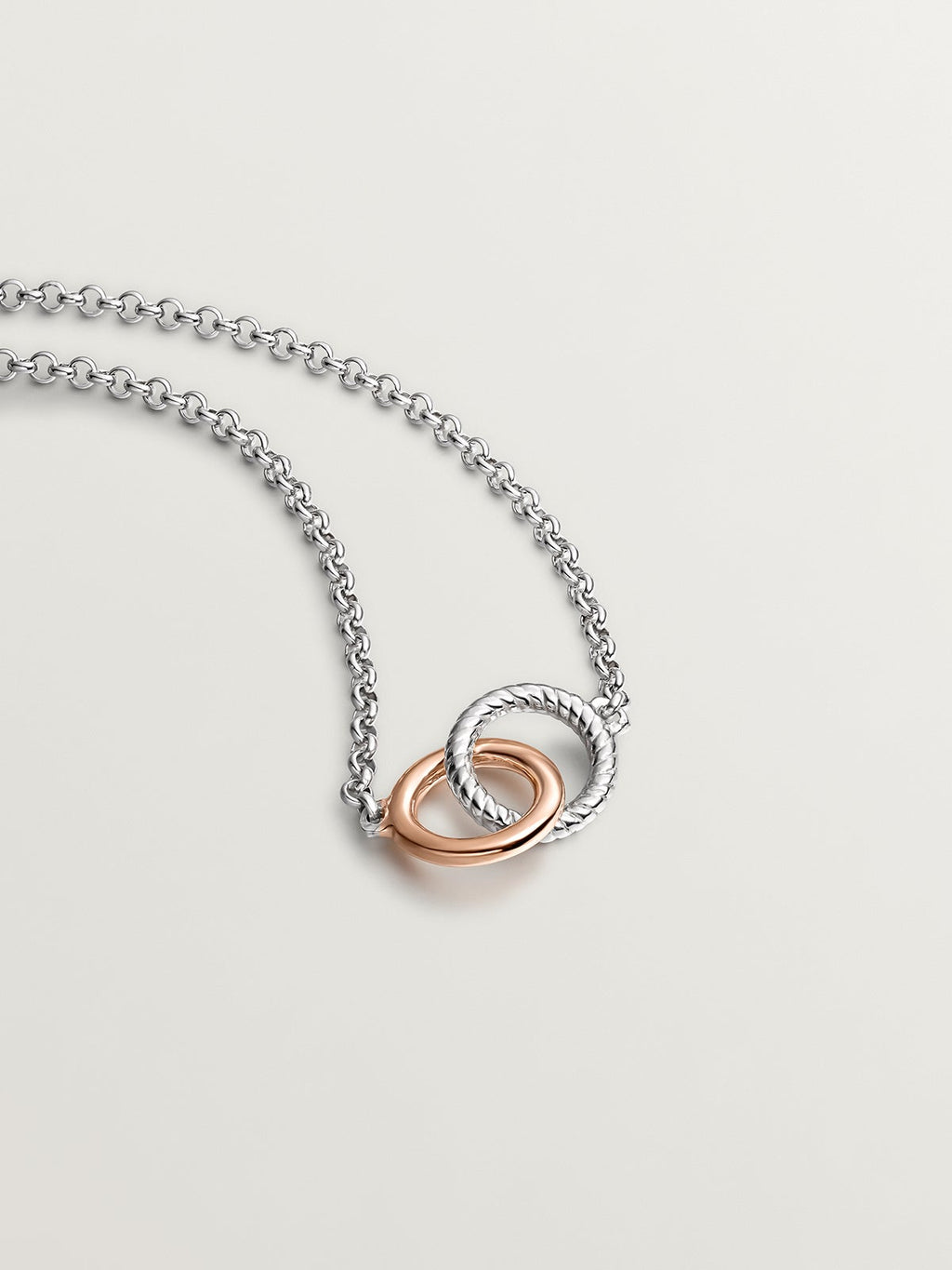 Colgante de plata 925 y plata 925 bañada en oro rosa de 18K con círculos entrelazados