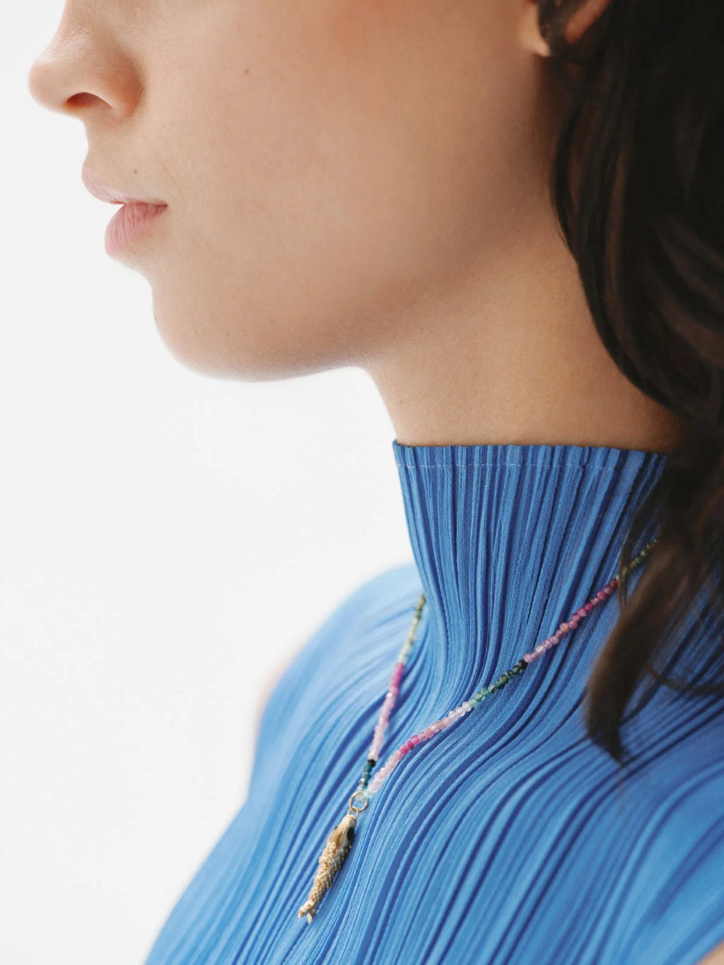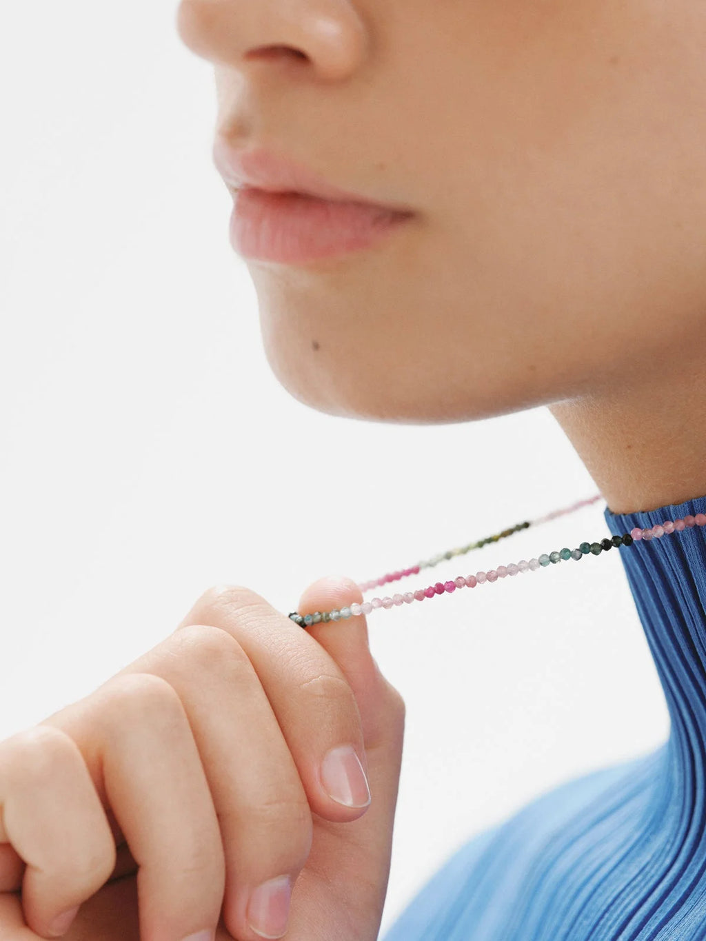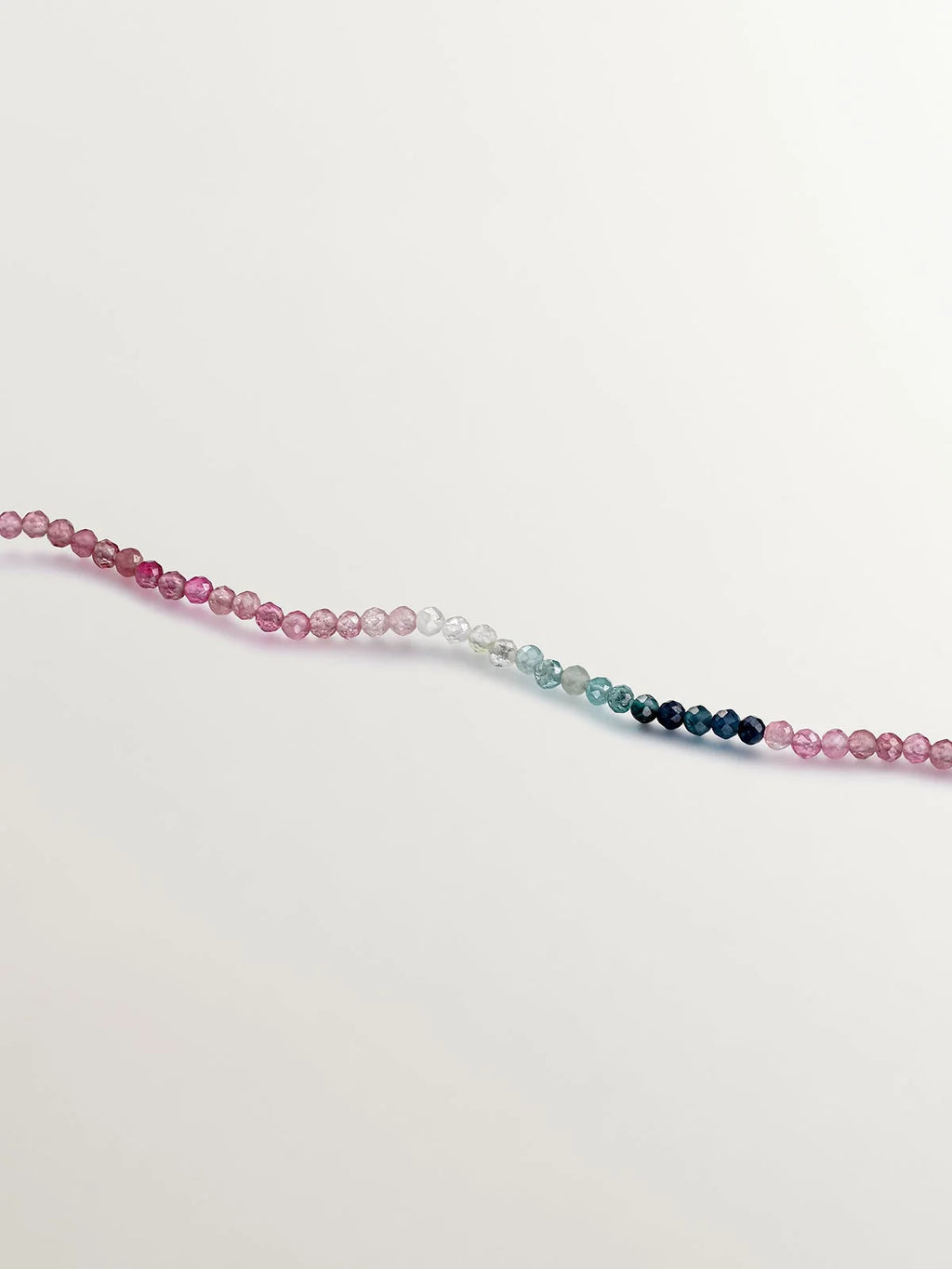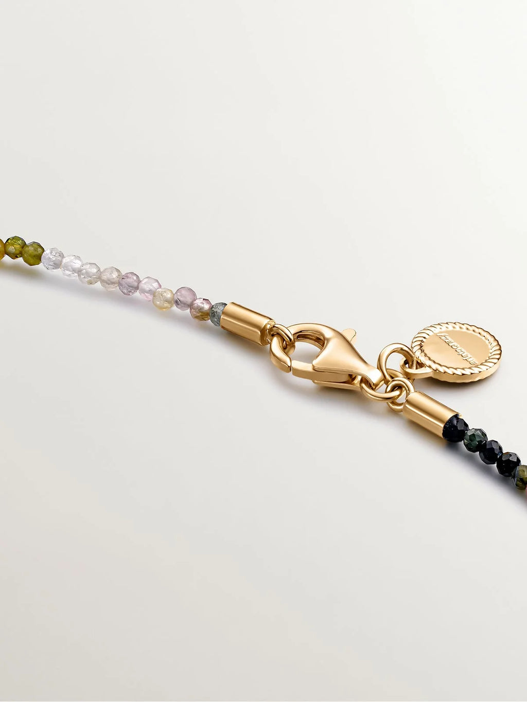 Collar de plata 925 bañada en oro amarillo de 18K con bolitas de turmalina multicolor