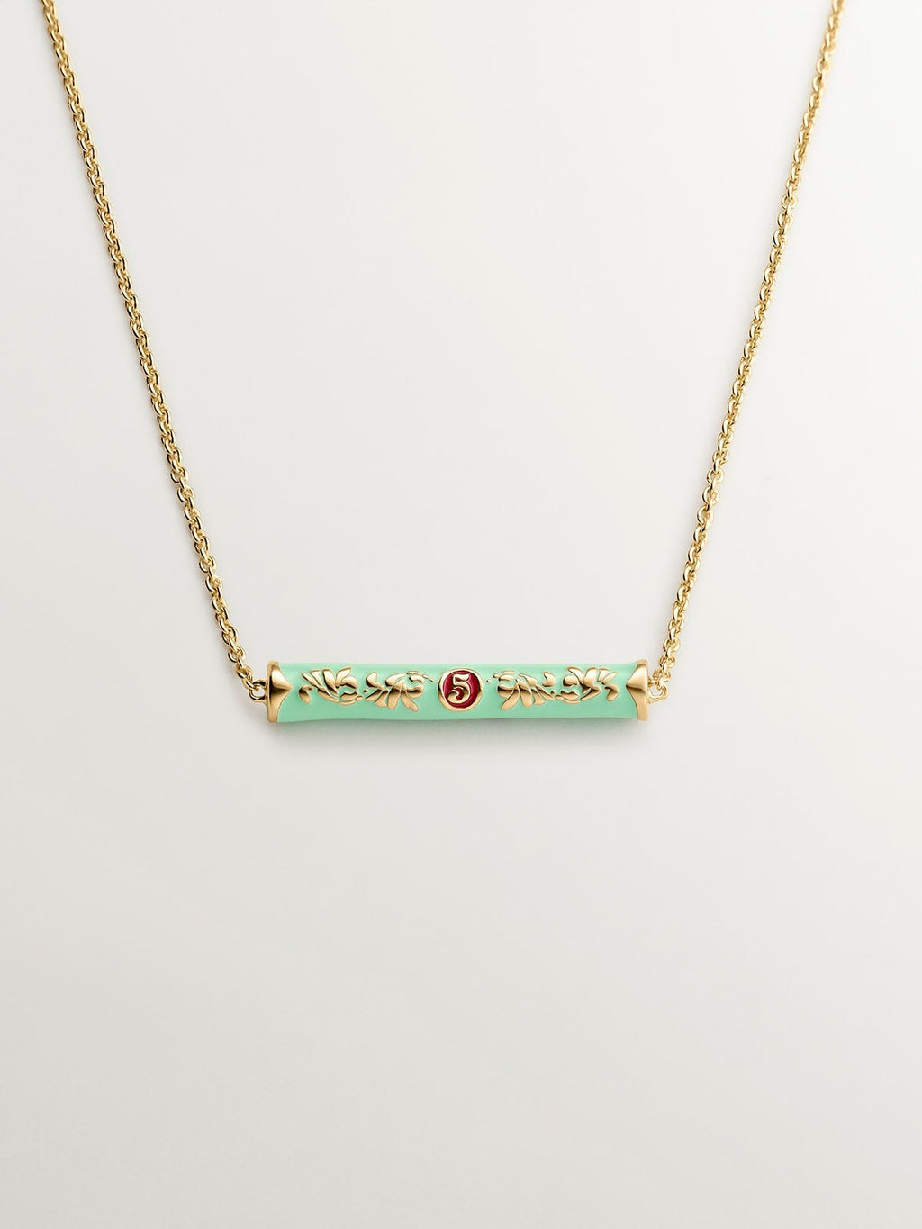 Collar de plata 925 bañada en oro amarillo de 18K con esmalte de colores y número cinco