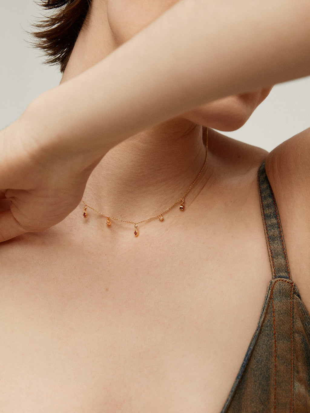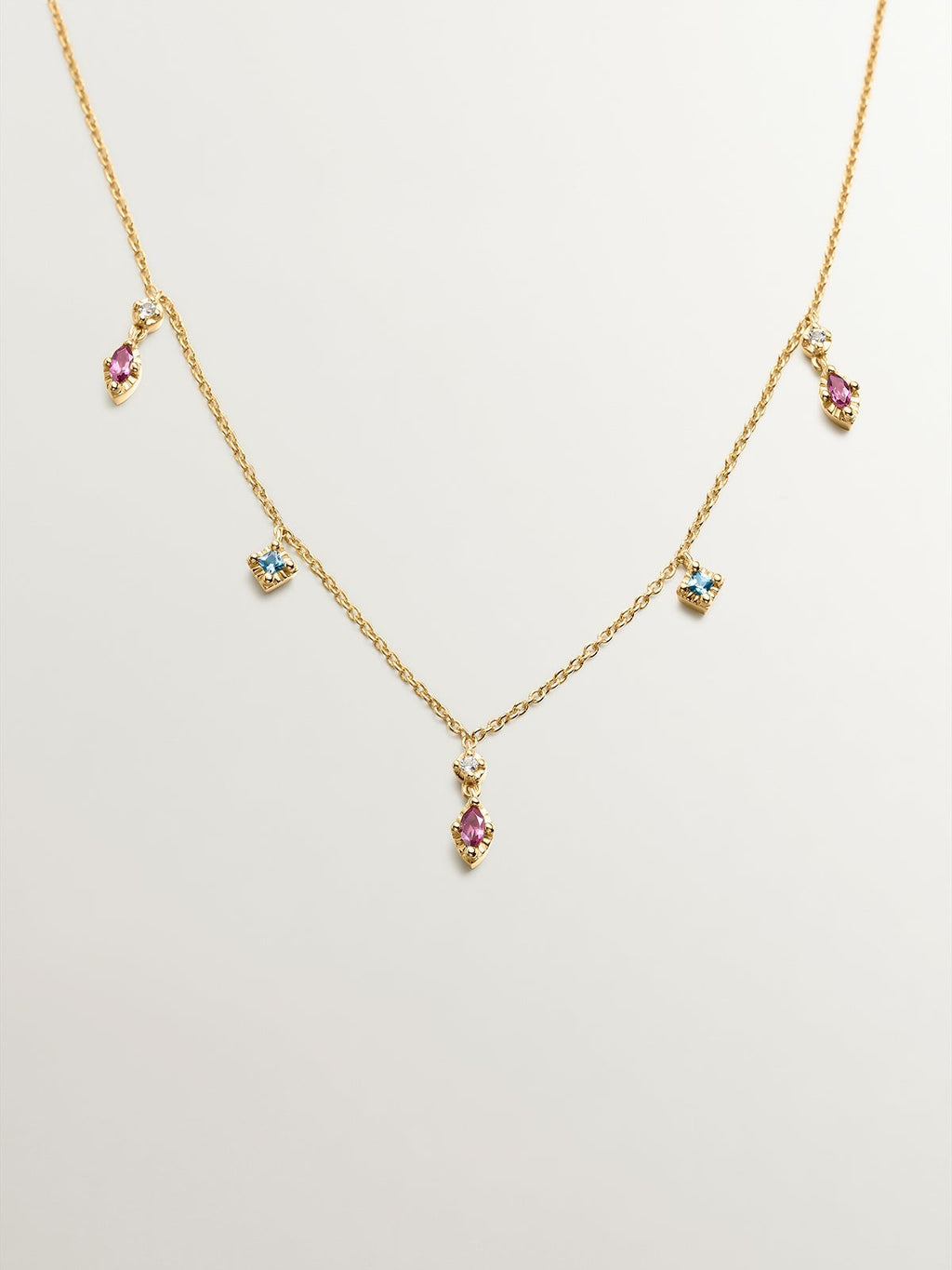 Collar de plata 925 bañada en oro amarillo de 18K con rodolitas y topacios