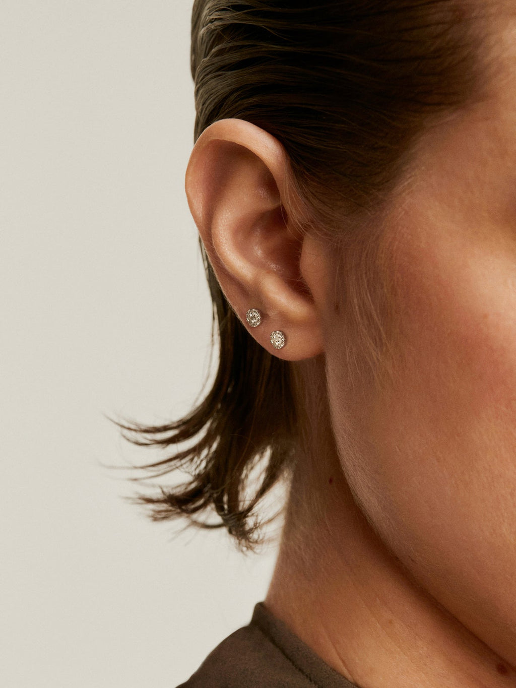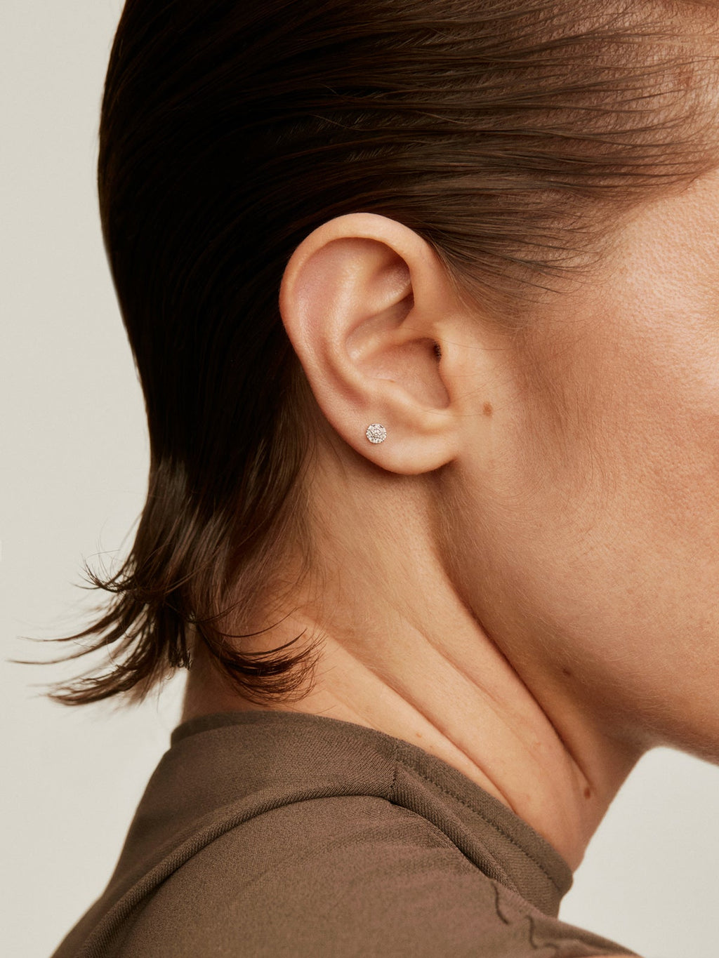 Pendiente individual de oro blanco de 18K con roseta de diamantes 0,06 cts