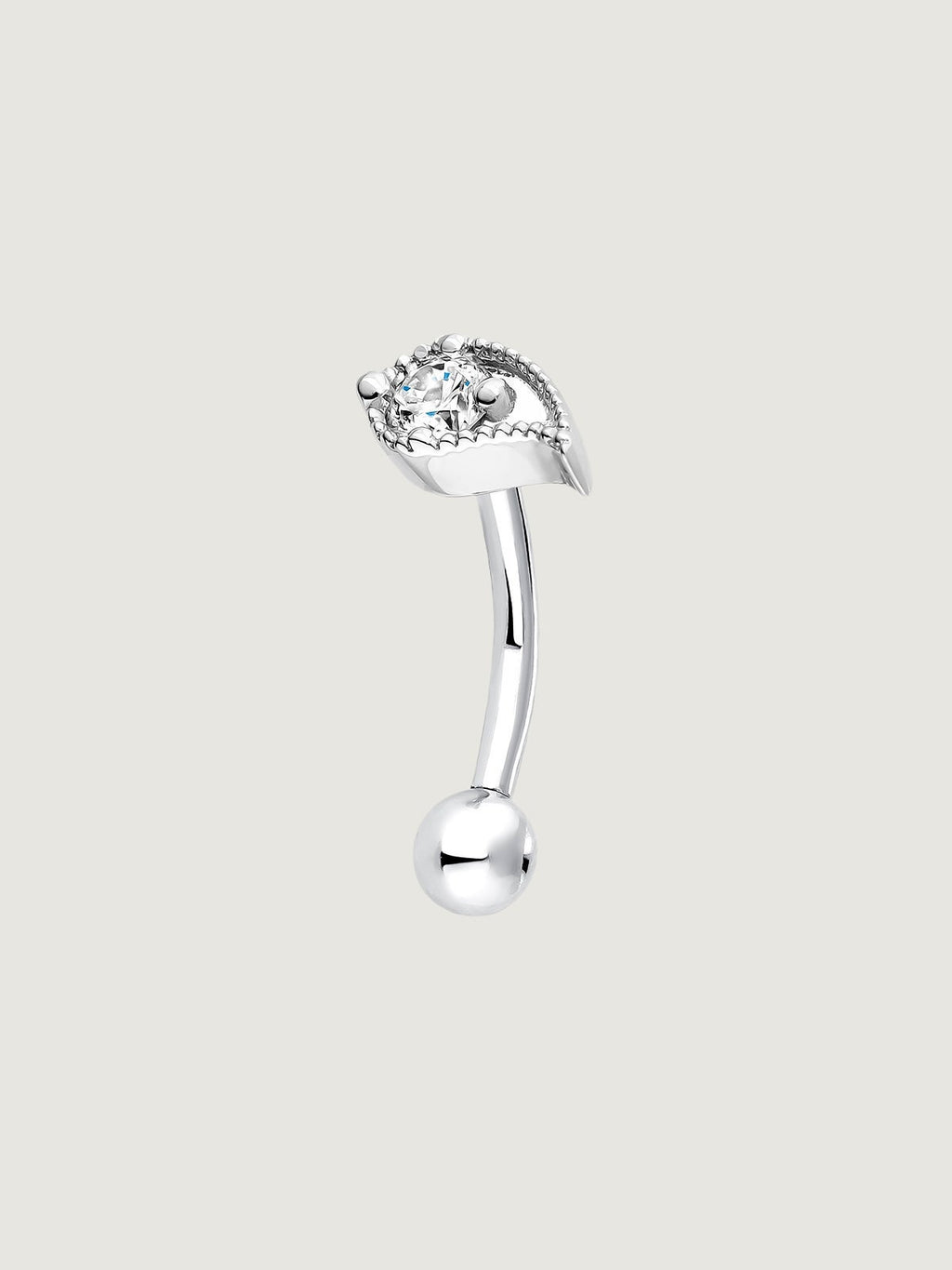 Pendiente individual de oro blanco de 9K con diamante y forma de gota