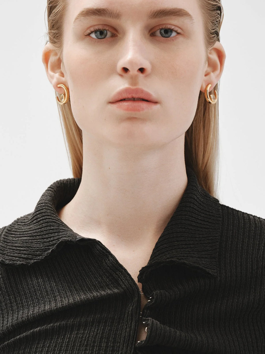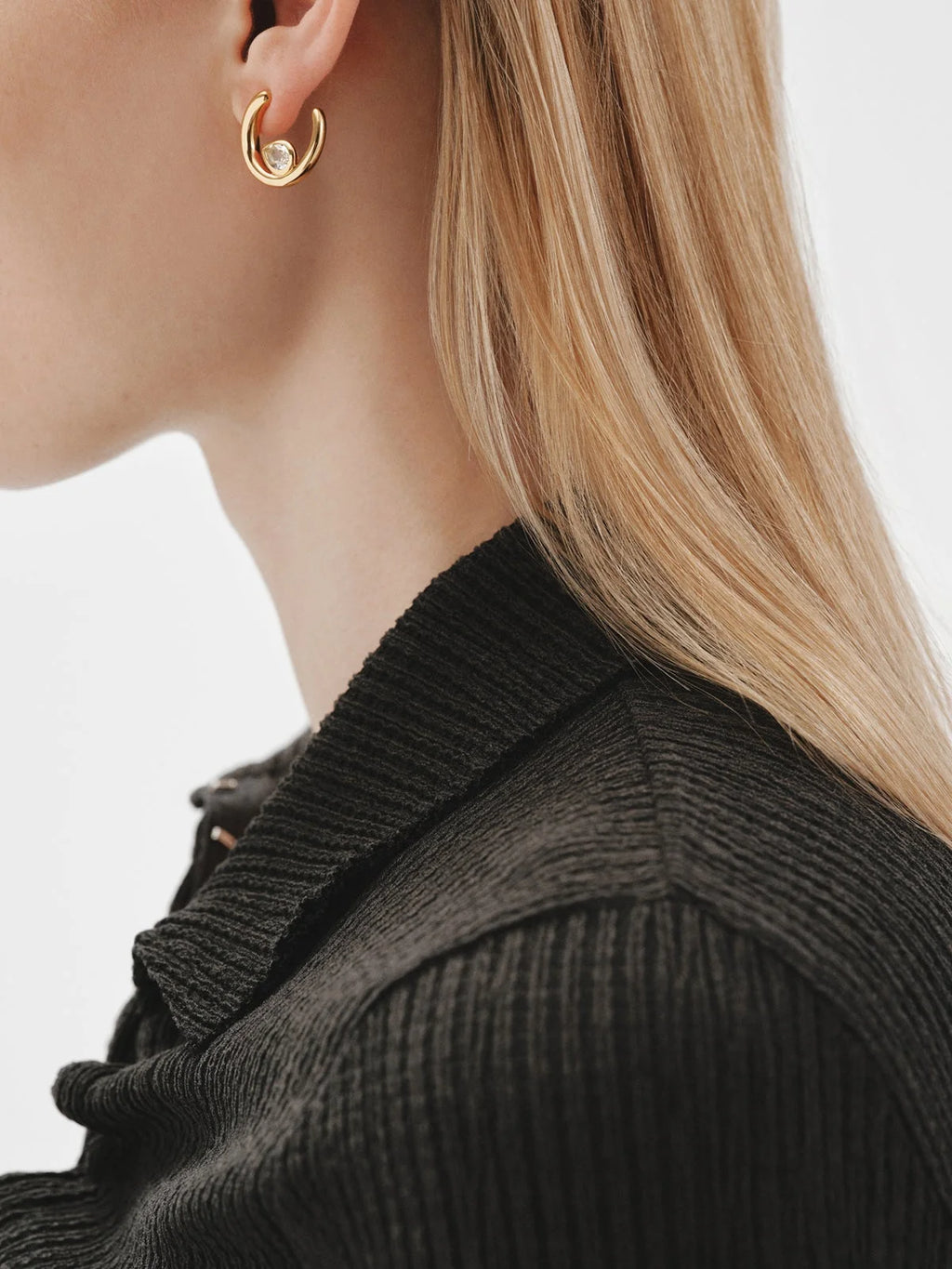Pendientes de aro de plata 925 bañada en oro amarillo de 18K con 2 topacios blancos