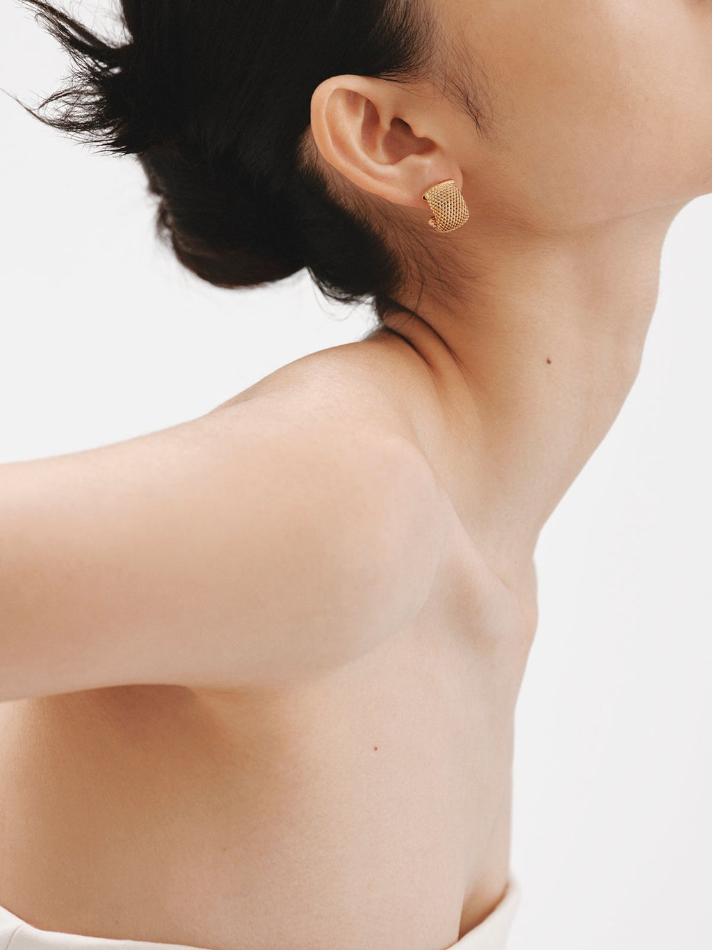 Pendientes de aro de plata 925 bañada en oro amarillo de 18K con malla