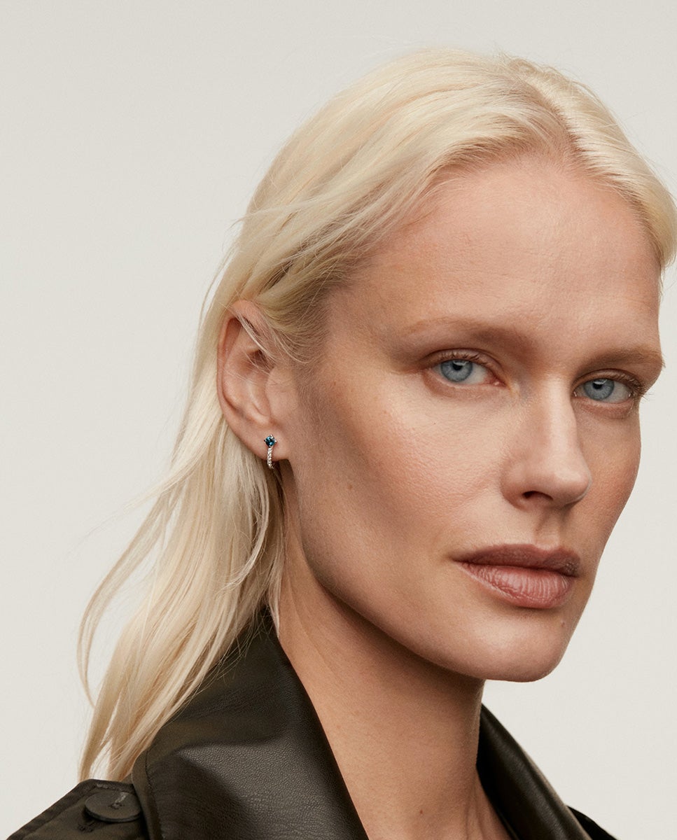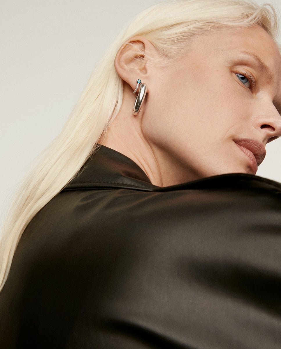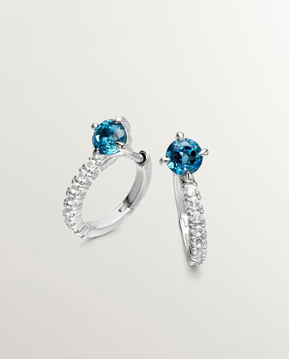 Pendientes de aro de plata 925 con topacios azul y blancos
