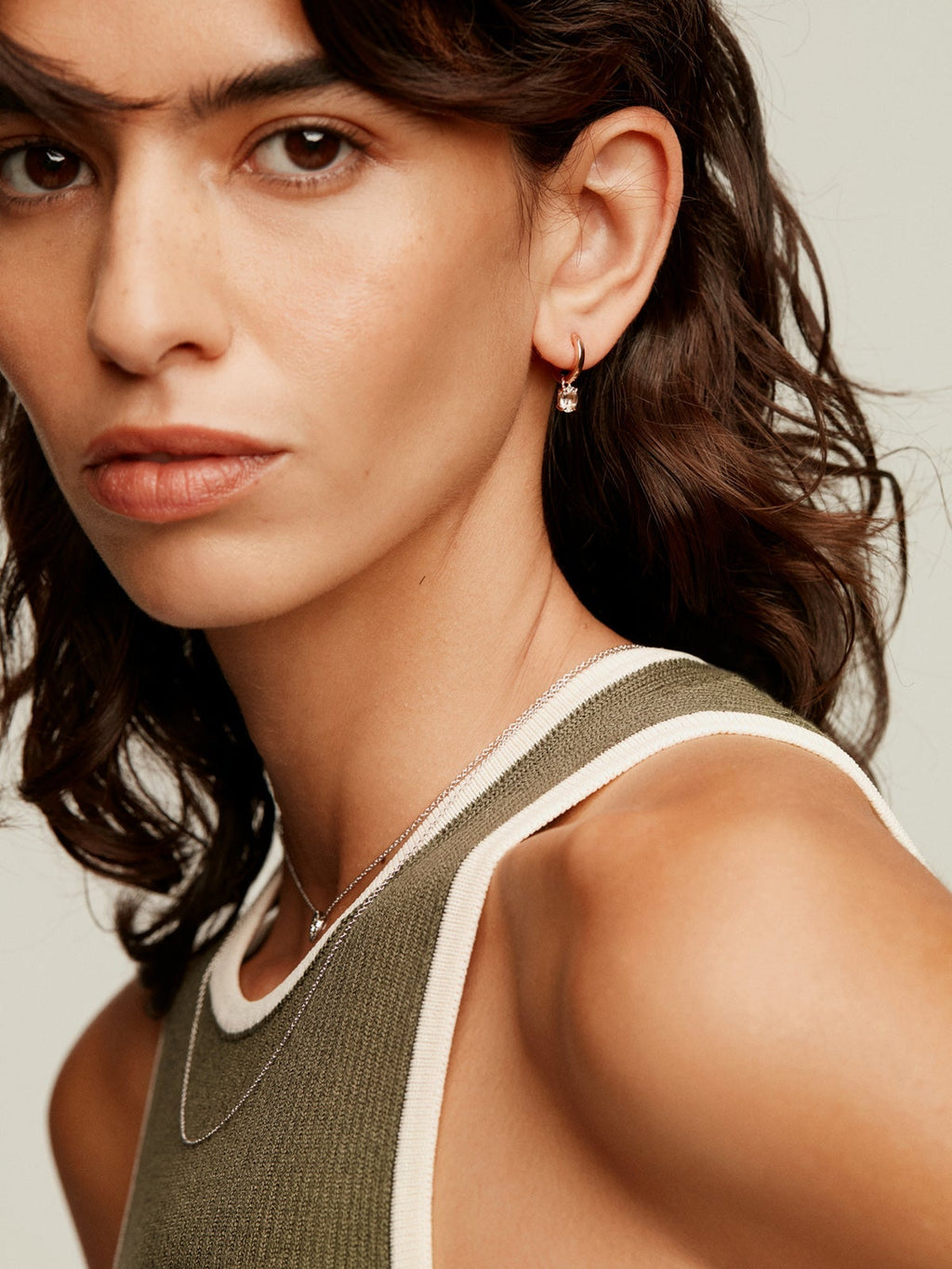 Pendientes de aro pequeños de plata 925 bañada en oro rosa de 18K con cuarzo verde