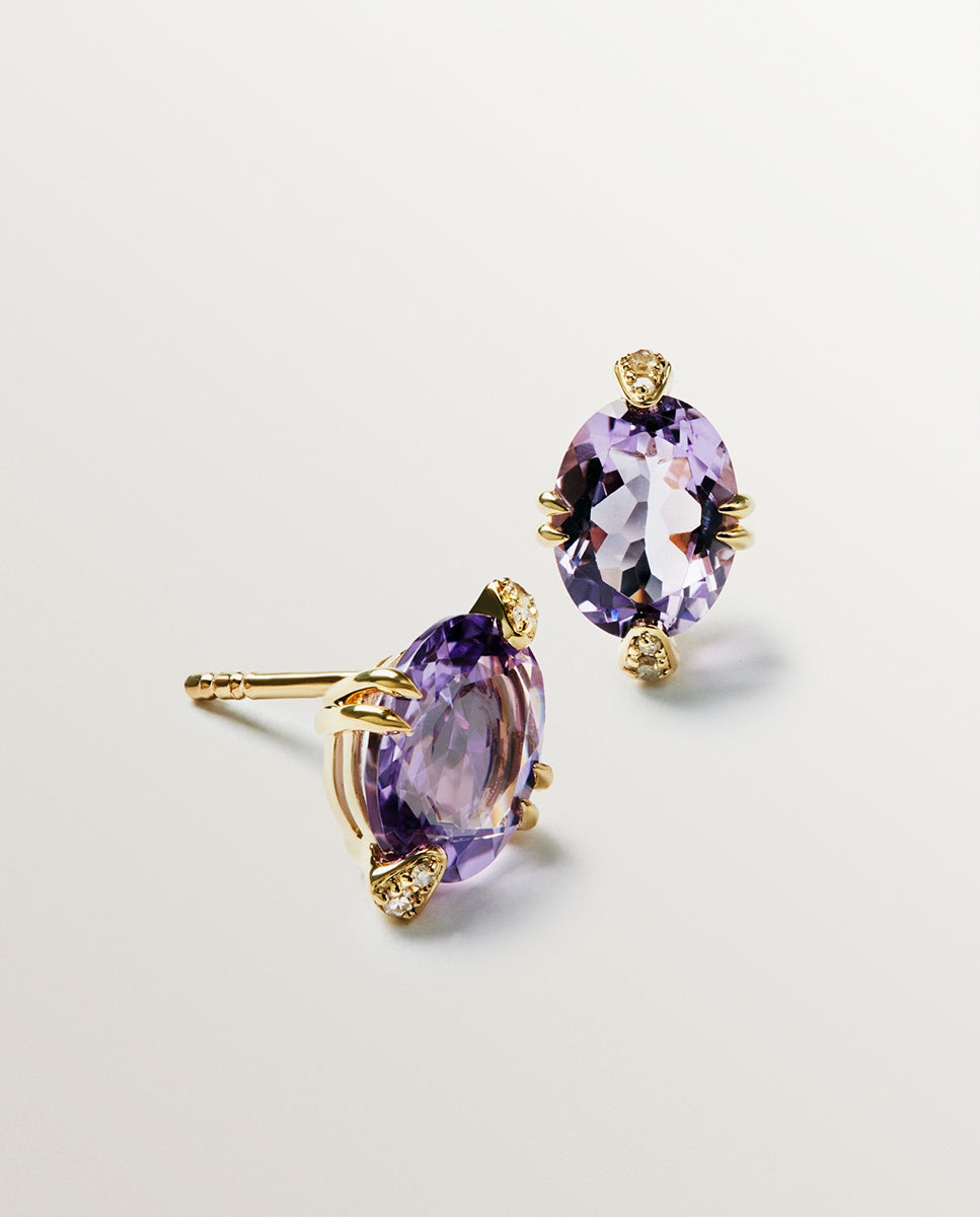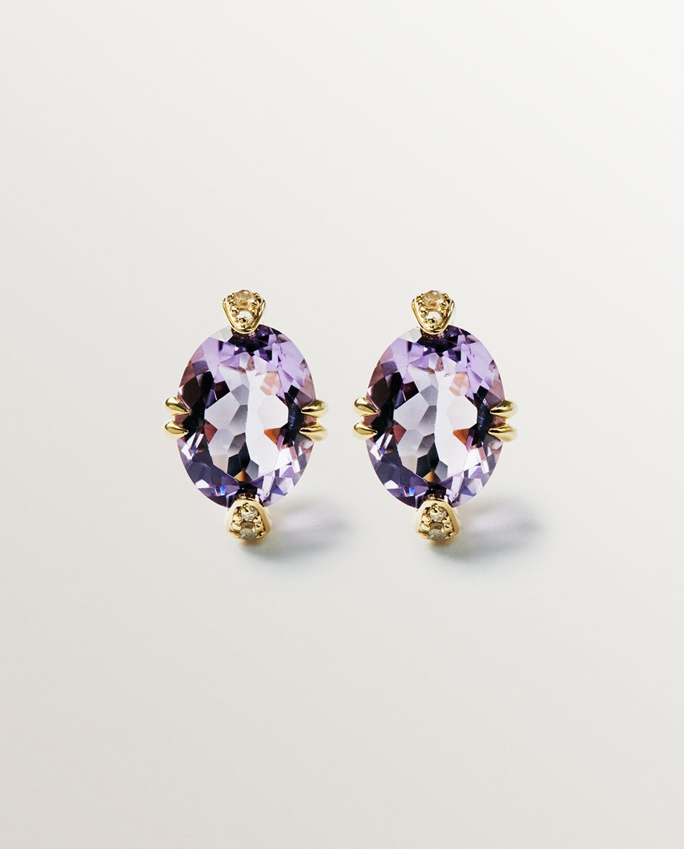 Pendientes de botón de oro amarillo de 9K con amatistas rosas y diamantes