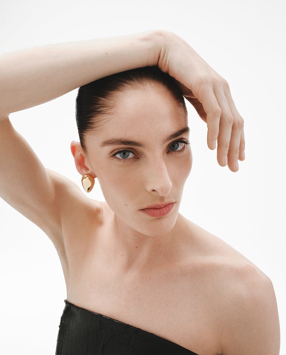 Pendientes de gota medianos de plata 925 bañada en oro amarillo de 18K con efecto pulido