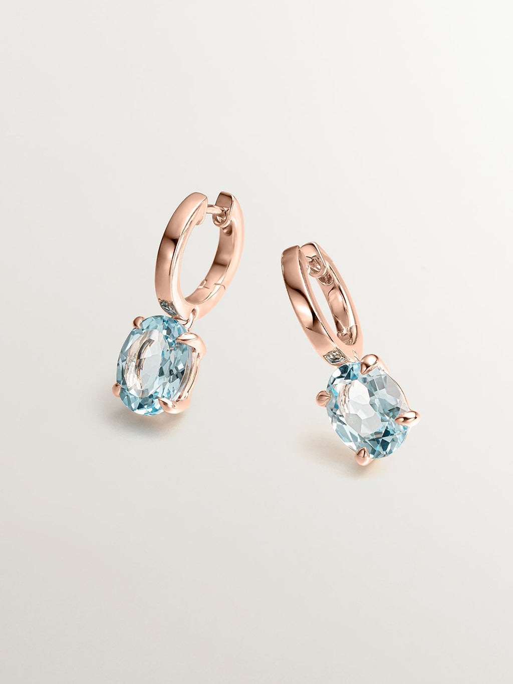Pendientes de plata 925 bañada en oro rosa de 18K con topacio azul sky