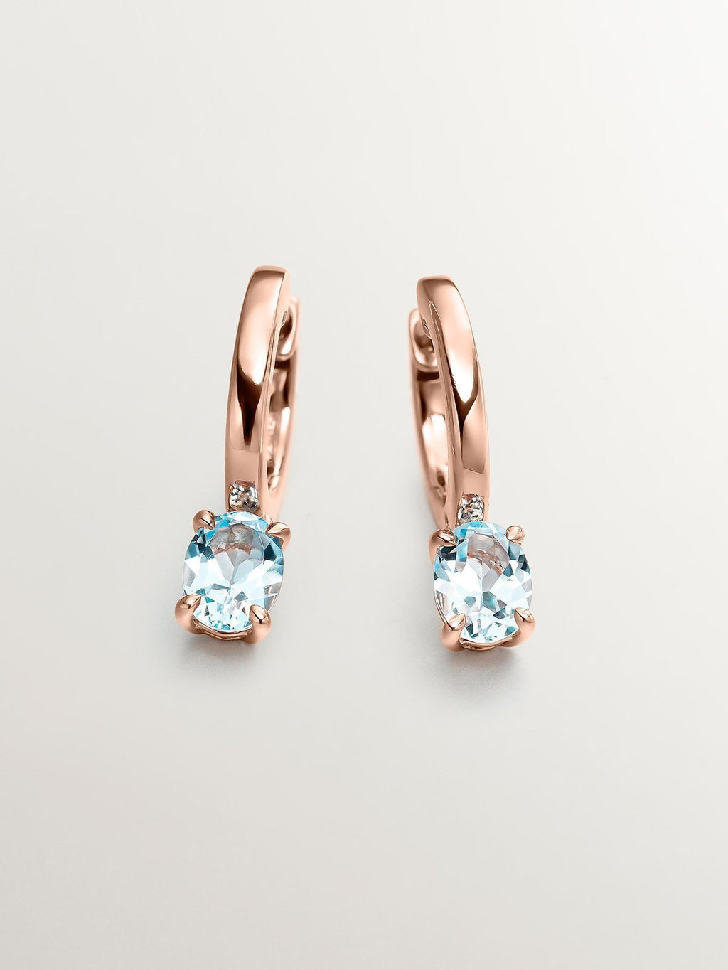 Pendientes de plata 925 bañada en oro rosa de 18K con topacio azul sky