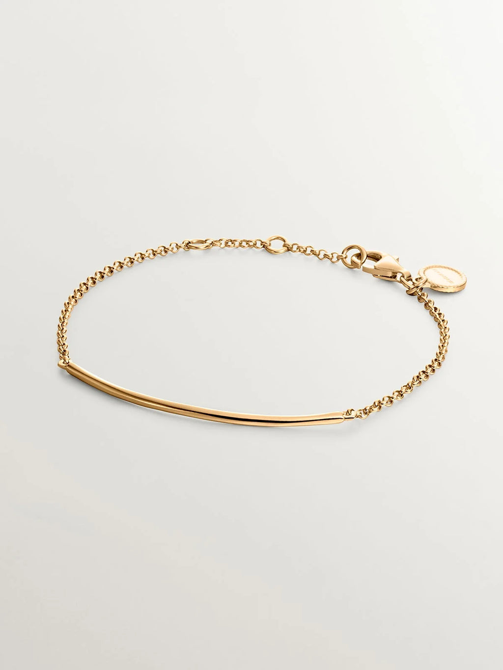 Pulsera de plata 925 bañada en oro amarillo de 18K con forma de tubo